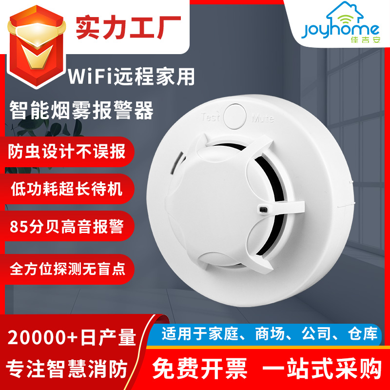 WiFi烟雾报警器是一种通过WiFi网络连接的智能烟雾报警设备。它能够实时监测烟雾浓度,并在检测到烟雾时通过WiFi网络发送报警信息到用户的手机或其他设备,从而实现远程监控和及时报警。这种设备广泛应用于家庭、办公室、酒店等场所,以提高火灾防范能力。 以下是关于WiFi烟雾报警器的详细介绍: