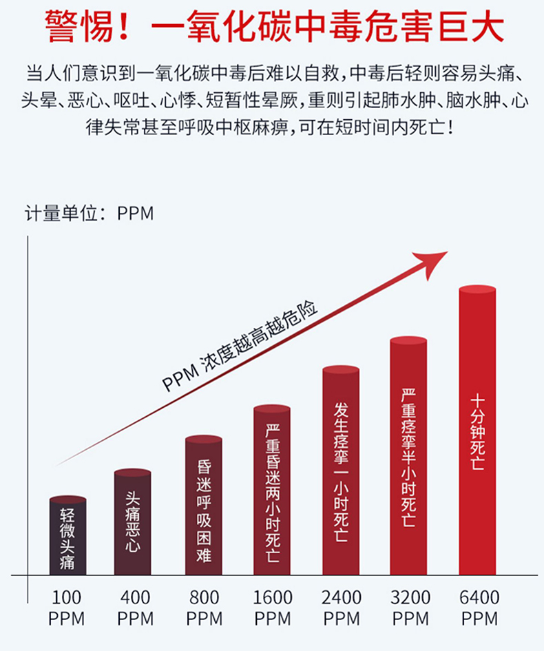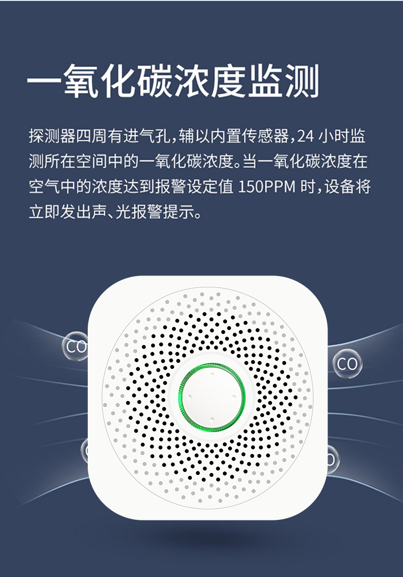 一氧化碳报警器是一种用于检测空气中一氧化碳(CO)浓度的电子装置。当一氧化碳浓度超过安全阈值时,报警器会发出声音或光报警,以提醒人们及时采取措施,避免一氧化碳中毒事故的发生。一氧化碳是一种无色、无味、无刺激的气体,对人体有毒性,主要通过影响氧气的供给与利用来造成伤害。因此,安装一氧化碳报警器对于预防一氧化碳中毒具有重要意义。